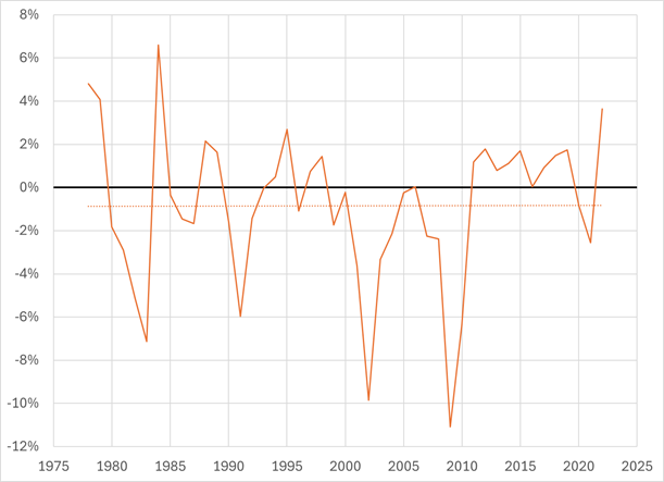 Figure 3. Net Manufacturing Job Creation Rate, 1978-2022