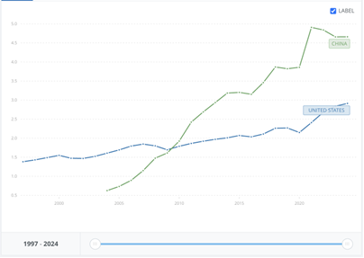 What are the facts?. China’s manufacturing output for 2024 reached a staggering $4.67 trillion in total value added. The US, by comparison, produced a mere $2.91 trillion. By all accounts, in raw terms, China is producing about 60% more output than we are.